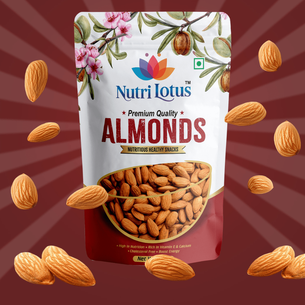 Nutri Lotus Premium Almonds are sourced from the finest farms and selected for their superior size, flavor, and nutritional value. Naturally rich in protein, healthy fats, vitamins, and antioxidants, these almonds are a perfect addition to your daily wellness routine. Crunchy, fresh, and irresistibly tasty, they make an excellent snack and a versatile ingredient for cooking, baking, smoothies, and meal prep. Clean, nutritious, and wholesome -the perfect everyday superfood.
