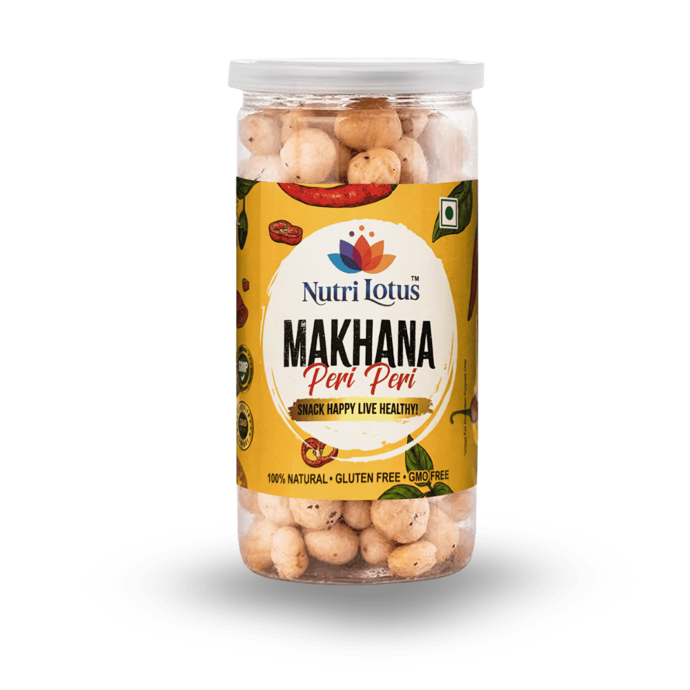 Nutri Lotus Premium Makhana is made from handpicked, high-quality lotus seeds sourced from trusted farmers. Lightly roasted to maintain crunch and nutrition, our Peri Peri flavour brings a bold, fiery, and irresistible twist to your healthy snacking routine. Packed with international-style seasoning, it offers the perfect balance of heat, tang, and flavour- making it your go-to snack for anytime cravings. Perfect for fitness lovers, movie nights, office snacking, and anyone who enjoys a spicy, flavourful treat without compromising on health.